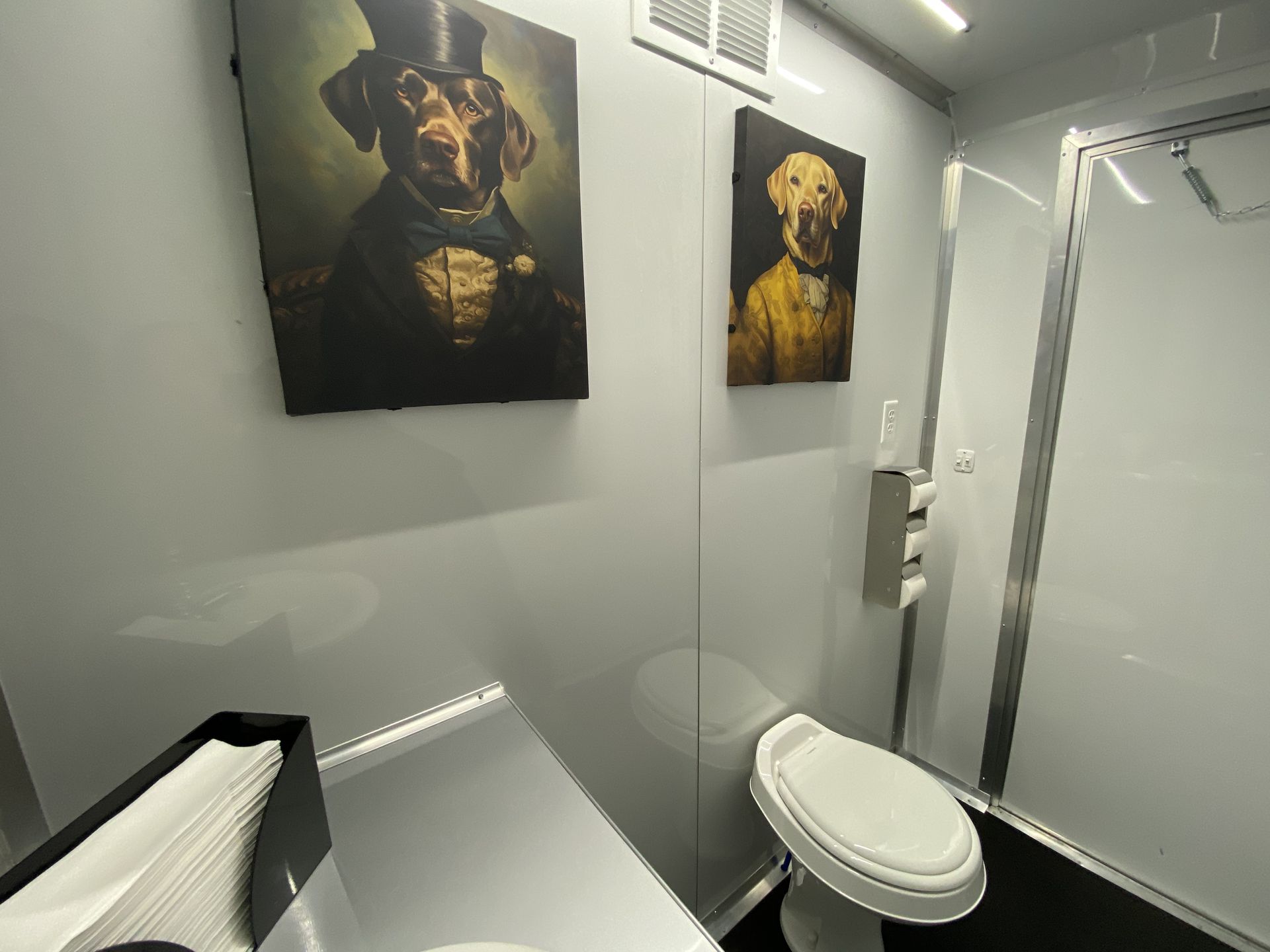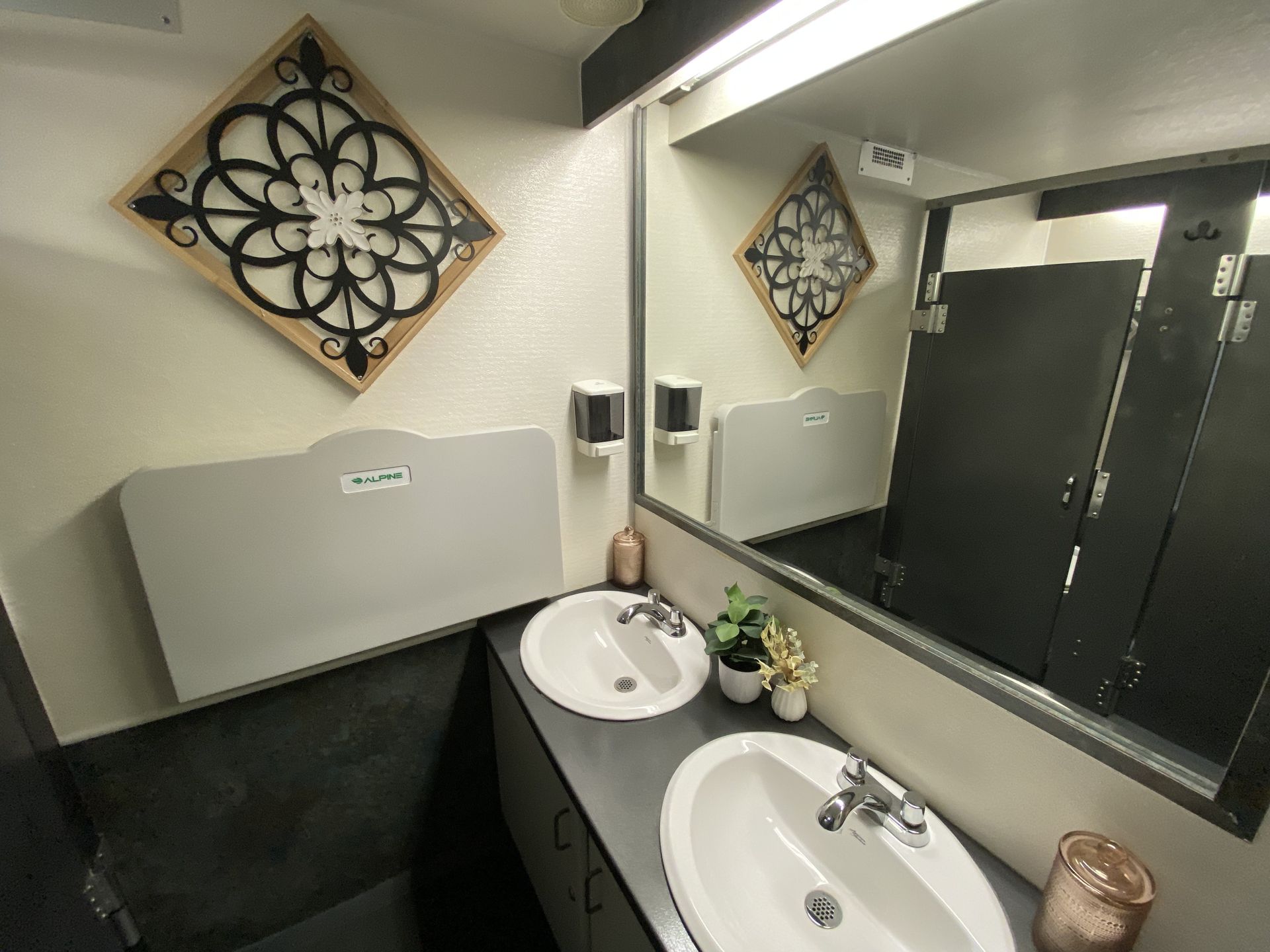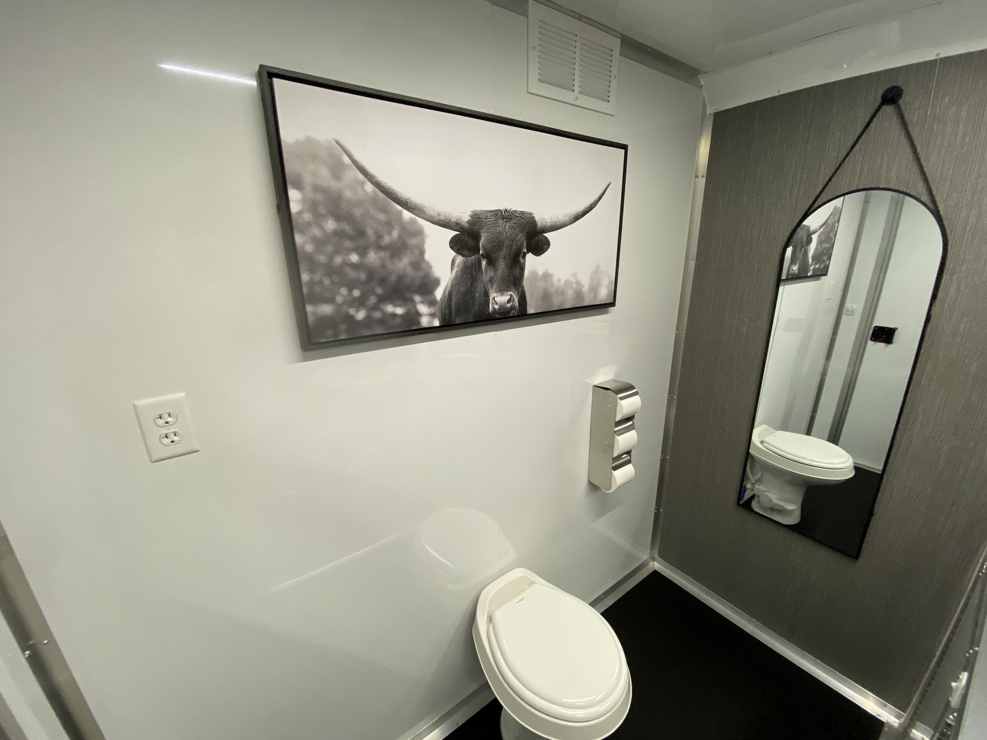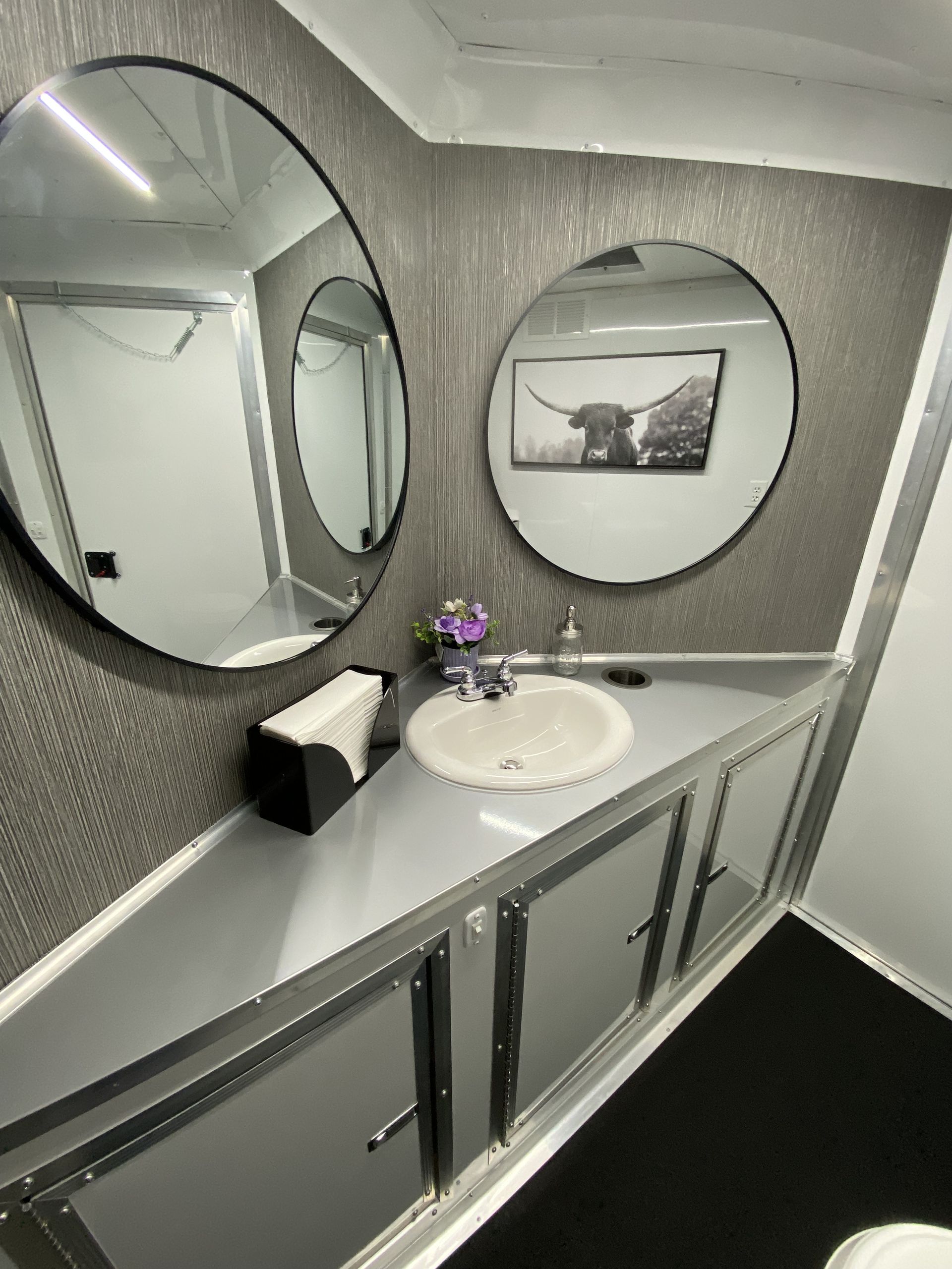 For small to medium-sized parties and events, we also have a 2-stall restroom trailer that is available for rent. This unit has all the bells and whistles as the larger unit, just in a more compact size with 2 stalls. This unit is brand new to our fleet in 2025 and we are working on decor for the inside. Please contact us for a quote! (Click here to learn more about this trailer)