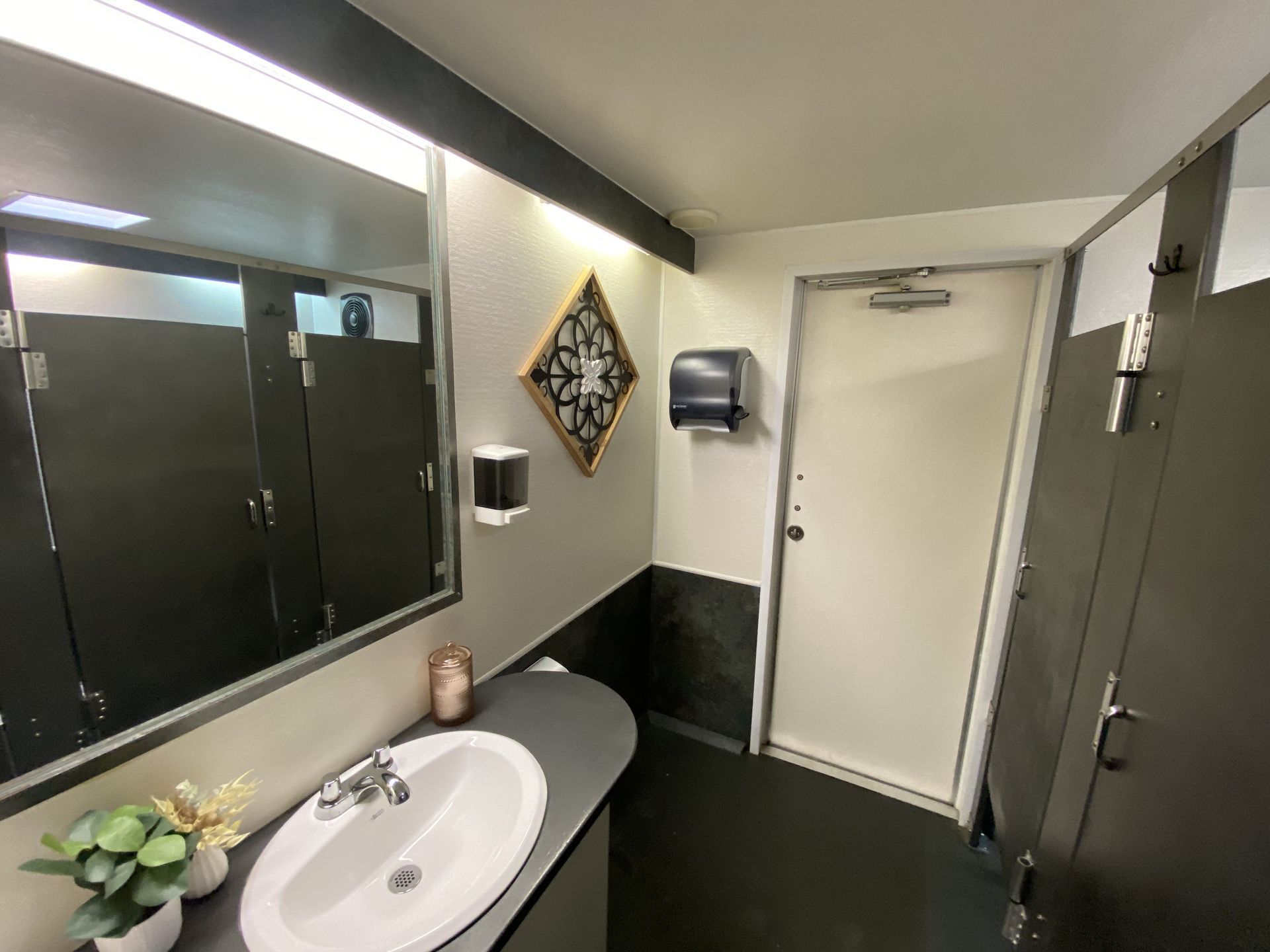 - Interior lighting, mirrors, and paper products provided