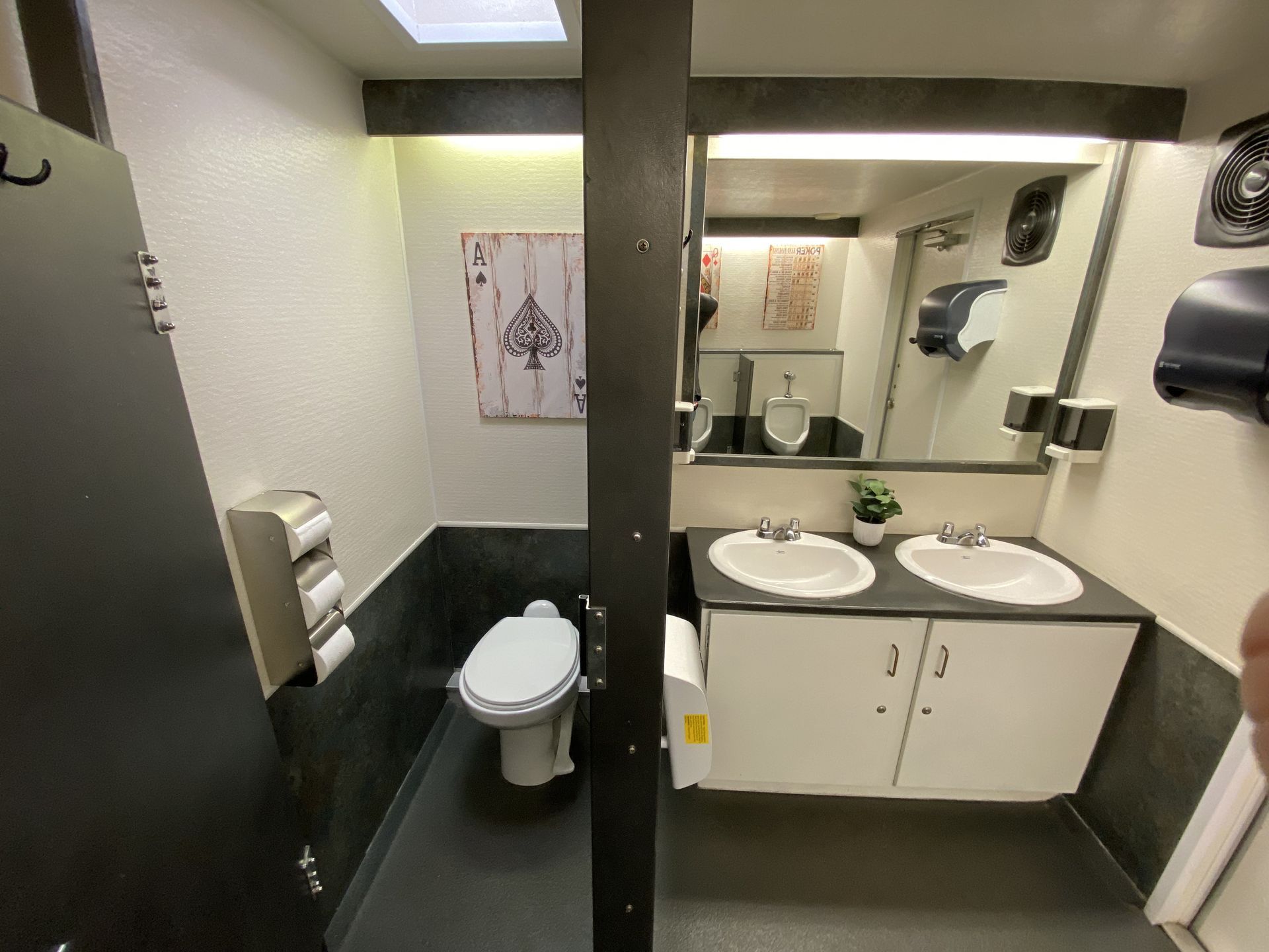 - 1 private stall + 3 urinals on the men’s side